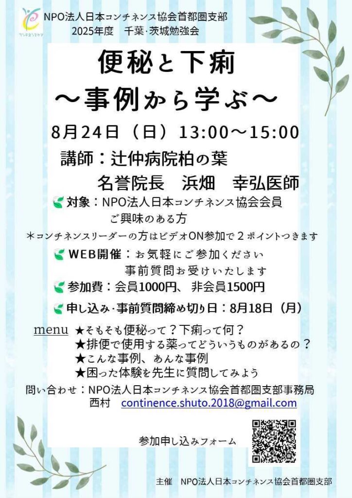 お問い合わせ:NPO法人日本コンチネンス協会首都圏支部事務局 西村